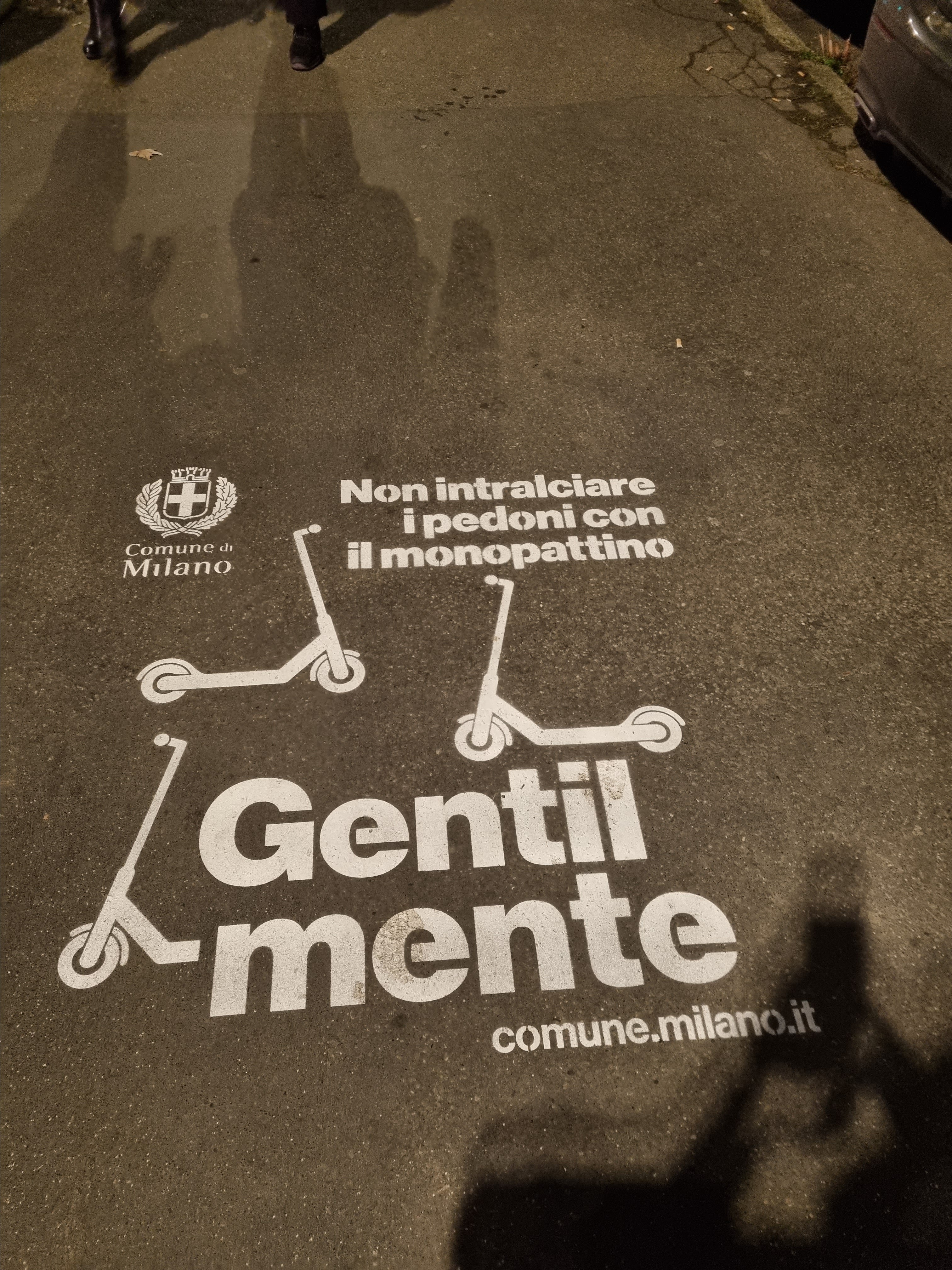 l'invito elegante del Comune di Milano per chi usa i monopattini per muoversi in città a farlo rispettosamente nei confronti dei pedoni, un gesto sì di gentilezza ma anche di prudenza e sicurezza per sé e per gli altri.